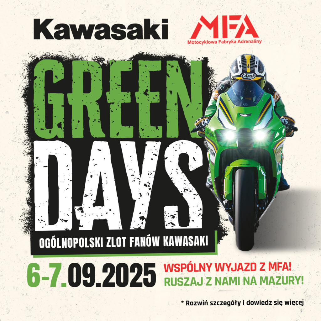 Czy słyszeliście już o pierwszym ogólnopolskim zlocie miłośników Kawasaki „Green Days”? To już 6-7 września w klubie „Mila” na Mazurach!